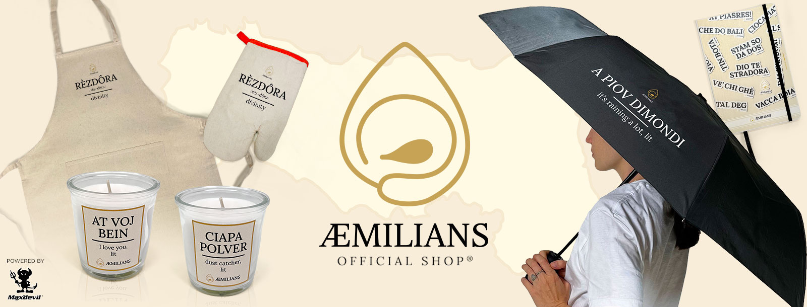AEMILIANS GREMBIULE "REZDORA" 15,00 € Questo prodotto è dedicato a LEI, il simbolo della famiglia emiliana, molto più di una semplice "donna di casa", stiamo parlando della REZDORA. Al giorno d'oggi è una figura quasi mitologica, ma che sia una nonna o una mamma, una donna emiliana sarà sempre un po' rezdora. T-shirt IL RITORNO DEL... 12,50 € 25,00 € -50% La nuova versione della maglietta che celebra il ritorno del Diablo nel Giubileo Rock 2025 -50% BAGLIONI T-shirt DONNA... 25,00 € La nuova edizione della t-shirt dedicata al tour "PIANO DI VOLO - SOLO TRIS" di Claudio Baglioni. Acquista almeno 2 t-shirt di Claudio Baglioni e ricevi in omaggio un Taccuino Piano di Volo BAGLIONI Cappello "PIANO DI... 17,50 € 35,00 € -50% Prendi il volo con il cappello "PIANO DI VOLO" di Claudio Baglioni! -50%