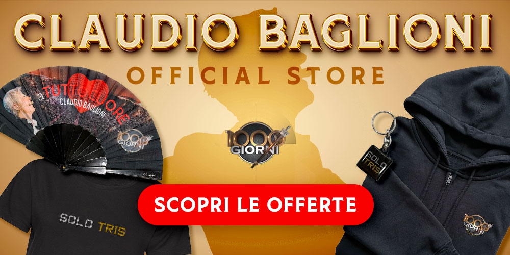 T-shirt IL RITORNO DEL... 12,50 € 25,00 € -50% La nuova versione della maglietta che celebra il ritorno del Diablo nel Giubileo Rock 2025 -50% BAGLIONI T-shirt DONNA... 25,00 € La nuova edizione della t-shirt dedicata al tour "PIANO DI VOLO - SOLO TRIS" di Claudio Baglioni. Acquista almeno 2 t-shirt di Claudio Baglioni e ricevi in omaggio un Taccuino Piano di Volo BAGLIONI Cappello "PIANO DI... 17,50 € 35,00 € -50% Prendi il volo con il cappello "PIANO DI VOLO" di Claudio Baglioni! -50%