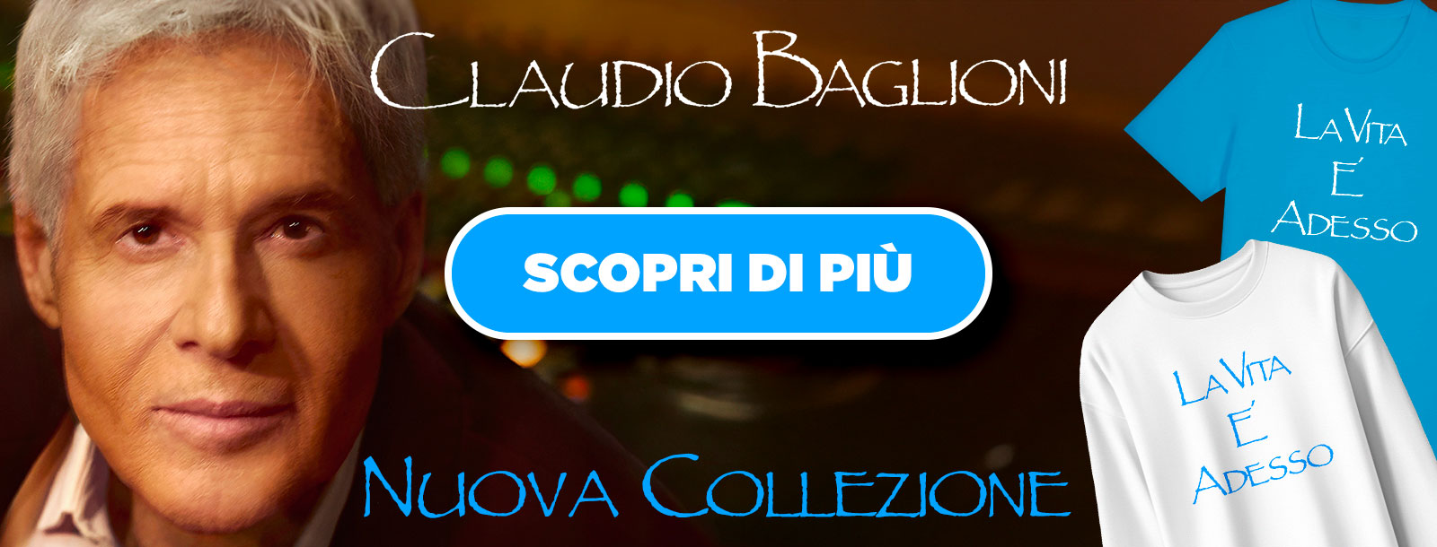BAGLIONI T-shirt DONNA... 25,00 € La nuova edizione della t-shirt dedicata al tour "PIANO DI VOLO - SOLO TRIS" di Claudio Baglioni. Acquista almeno 2 t-shirt di Claudio Baglioni e ricevi in omaggio un Taccuino Piano di Volo T-shirt L'ELEGANZA DEL... 25,00 € La maglietta dedicata al nuovo album di Gio Evan. METEMPSICOSI T-shirt LOGO... 20,00 € La t-shirt ufficiale Metempsicosi con il logo rivisitato in un artwork speciale. BAGLIONI Cappello "PIANO DI... 17,50 € 35,00 € -50% Prendi il volo con il cappello "PIANO DI VOLO" di Claudio Baglioni! -50% T-shirt IL RITORNO DEL... 12,50 € 25,00 € -50% La nuova versione della maglietta che celebra il ritorno del Diablo nel Giubileo Rock 2025 -50% AEMILIANS GREMBIULE "REZDORA" 15,00 € Questo prodotto è dedicato a LEI, il simbolo della famiglia emiliana, molto più di una semplice "donna di casa", stiamo parlando della REZDORA. Al giorno d'oggi è una figura quasi mitologica, ma che sia una nonna o una mamma, una donna emiliana sarà sempre un po' rezdora.